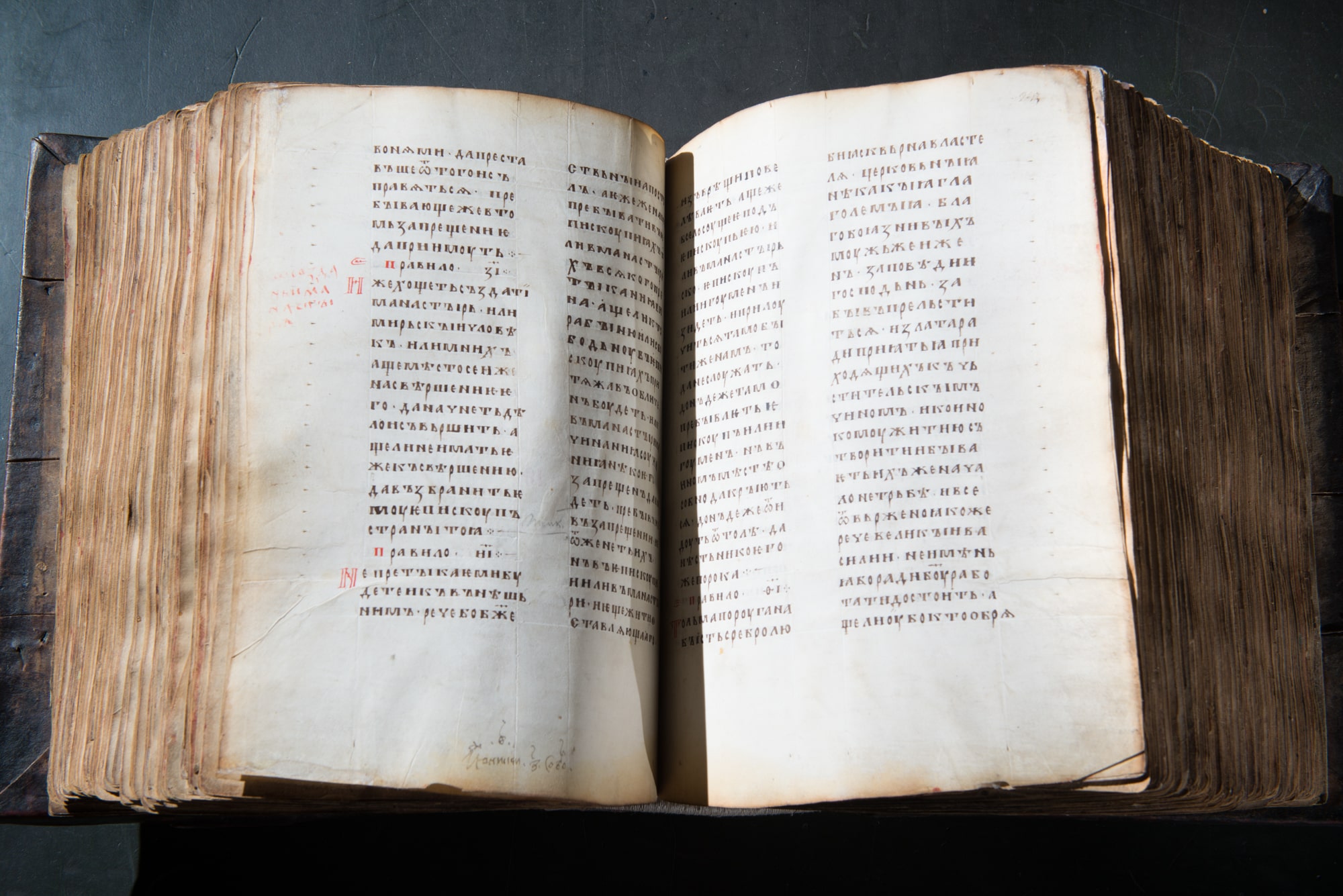 Завершаем трехлетний проект по реставрации первого на Руси свода законов и правил Новгородской кормчей XIII в.. Проект был инициирован нами как вклад в пропаганду и верховенство права. Осуществлялся совместно с Государственным историческим музеем.