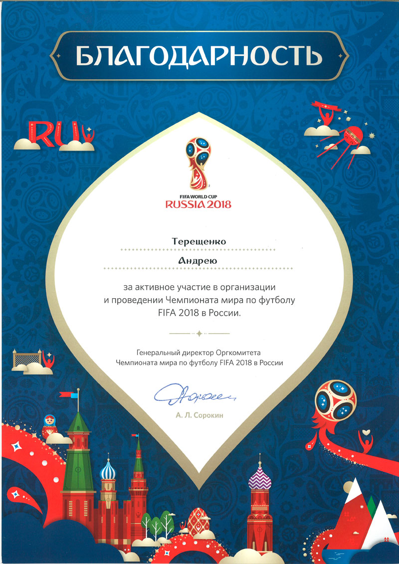Являемся эксклюзивным консультантом FIFA. В рамках подготовки к чемпионату 2018 г. нами была проделана колоссальная подготовительная работа.