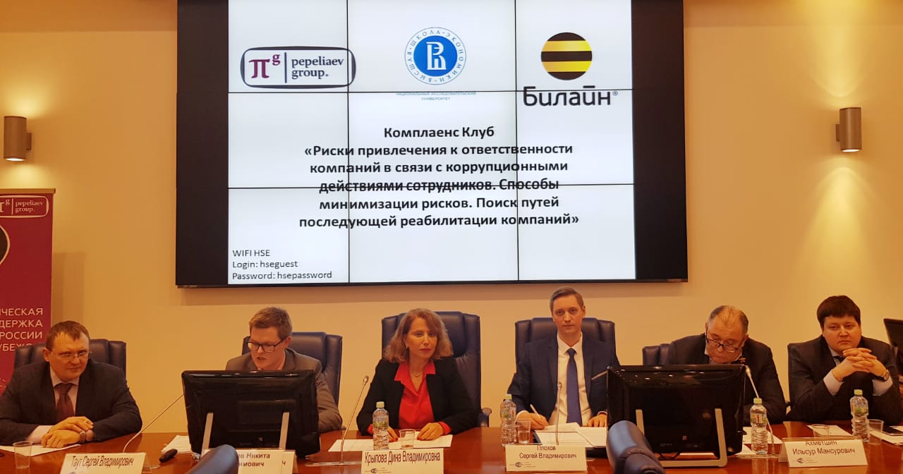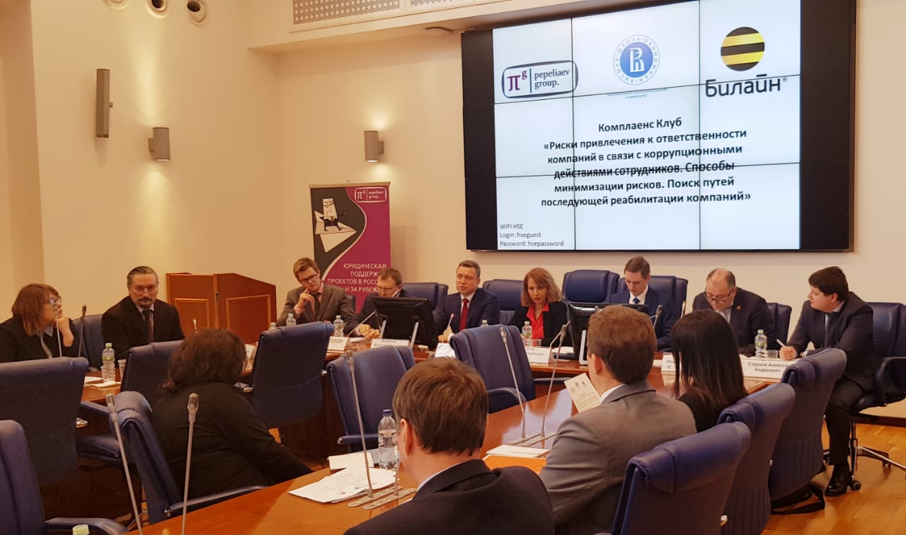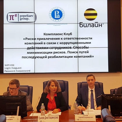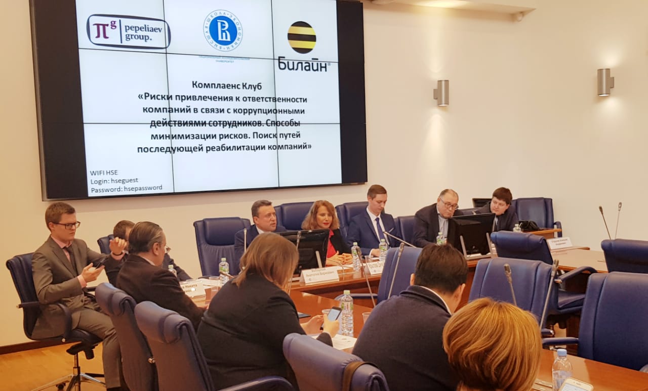 18 марта в НИУ ВШЭ состоялось первое заседание комплаенс-клуба, организованного Проектно-учебной лабораторией антикоррупционной политики (ПУЛ АП) НИУ ВШЭ при экспертной поддержке «Пепеляев Групп» и ПАО «ВымпелКом». Мероприятие было посвящено обсуждению рисков привлечения к ответственности компаний в связи с коррупционными действиями сотрудников.